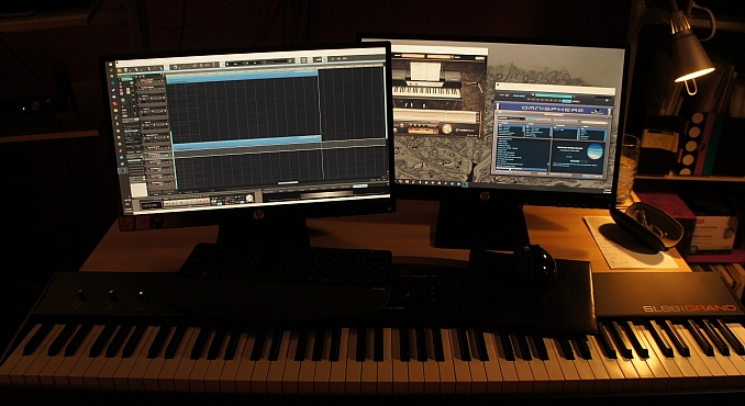 I play Gretch electric, Larrivee acoustic and Godin bass guitars. My main keyboard is a Studio Logic SL88 Grand A Yamaha RefaceCP is usually parked on my desk. Here are the main softwares I often use: